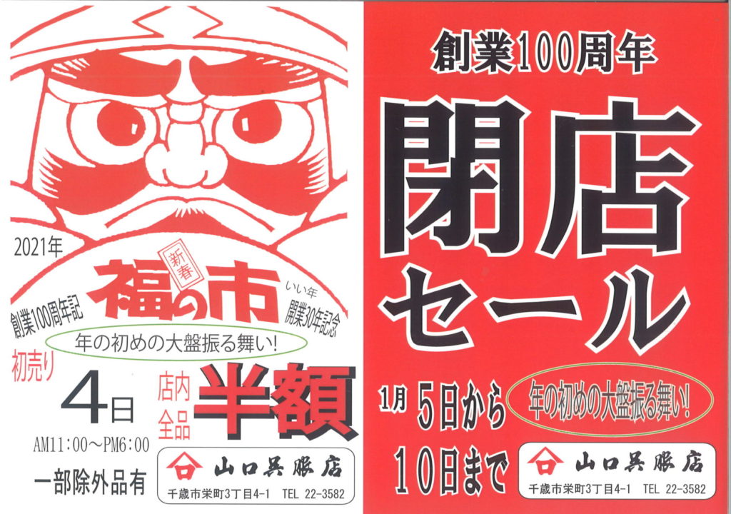 閉店するにあたり、お正月の初売り翌日から「閉店セール」も開催いたします。