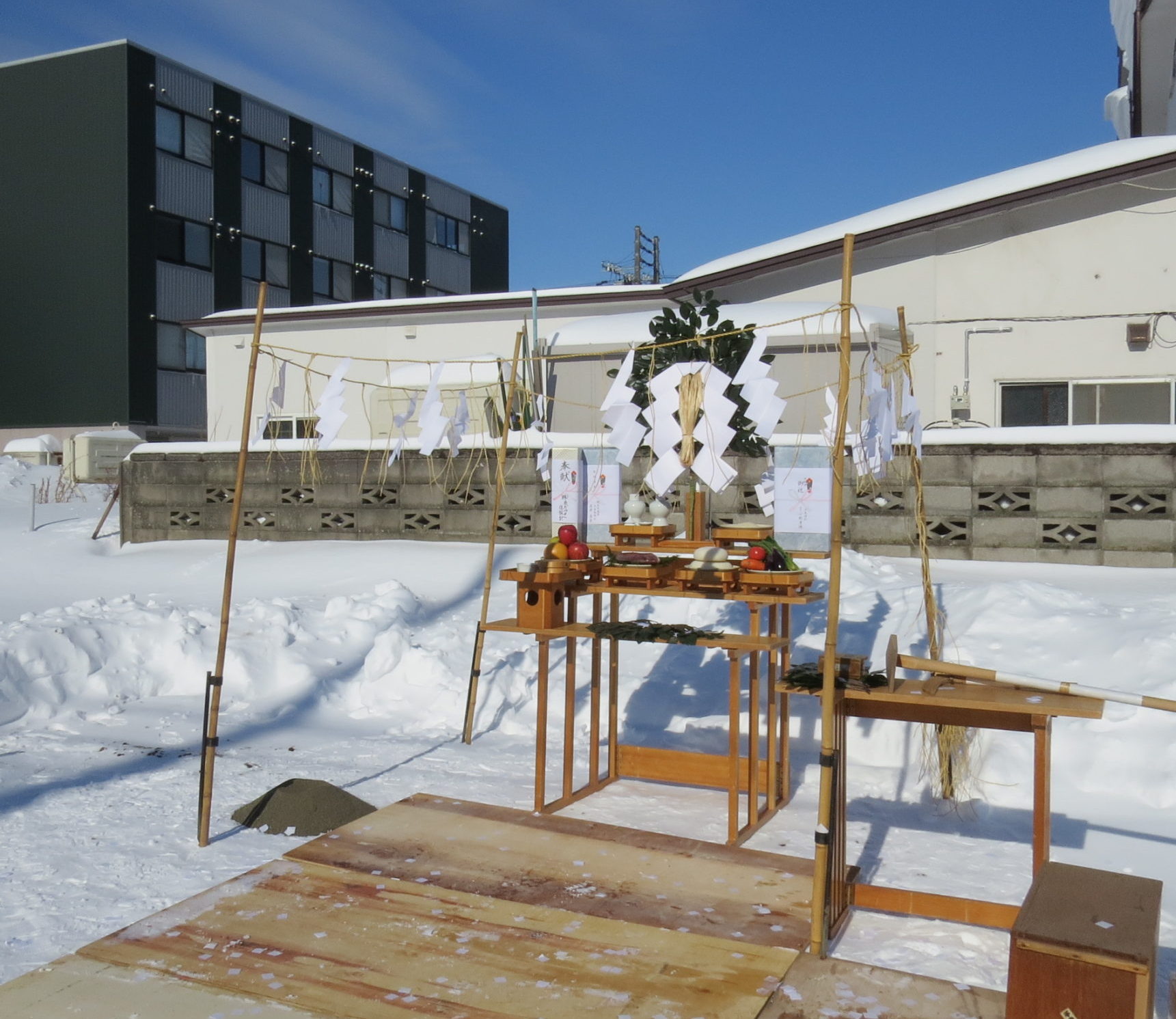 さて今日は朝から栄町新店舗建設の地鎮祭でした。